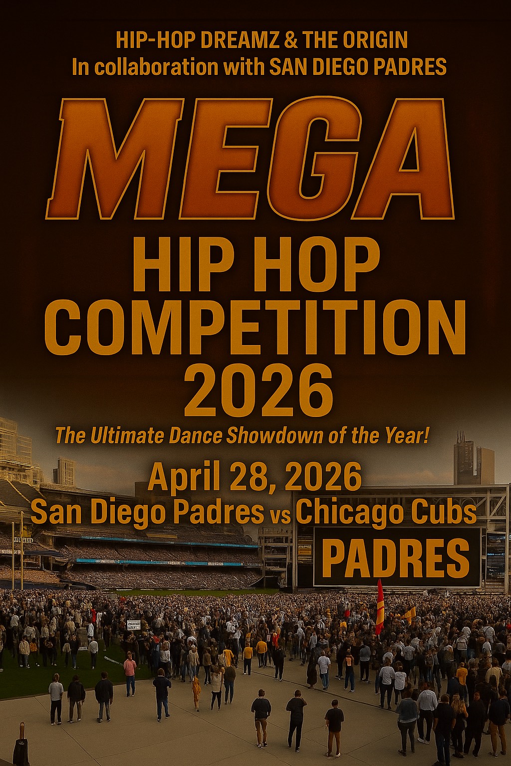 Origin Hip Hop & Hip Hop Dreamz, in collaboration with the San Diego Padres and Anthony Ramos, present the ultimate MEGA CREW Hip Hop showdown at Petco Park!